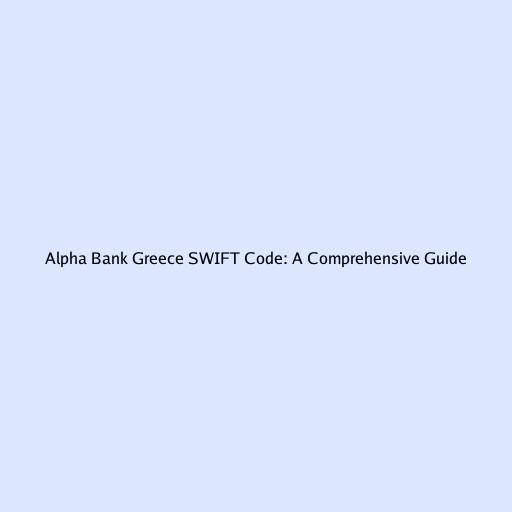 Alpha Bank Greece SWIFT Code: A Comprehensive Guide