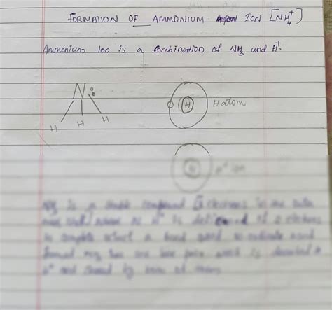 The ammonium ion forms when ammonia (NH₃) reacts with an acid , typically a proton (H⁺) from the acid. Ammonia has a lone pair of electrons on the nitrogen atom, which it can donate to form a covalent bond with the proton. This process is called protonation, and it results in the formation of the ammonium ion (NH₄⁺). The reaction can be represented as: NH₃ + H⁺ → NH₄⁺. This reaction is exothermic, meaning it releases heat. The formation of ammonium ion is a fundamental concept in acid-base chemistry and is often used to illustrate the behavior of Lewis bases and acids. The reaction is also reversible, meaning that the ammonium ion can lose a proton to revert back to ammonia, depending on the pH of the solution. This equilibrium between ammonia and ammonium ions is crucial in many biological and chemical systems.