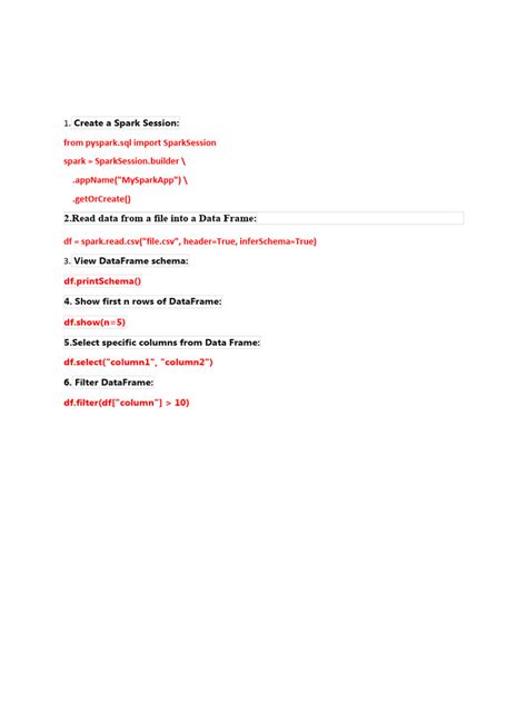 Now, let’s get to the heart of the matter: the essential Spark commands you need to know. These commands will help you perform various operations, from loading data to transforming and analyzing it. We’ll cover commands for SparkContext, SparkSession, RDDs, DataFrames, and Spark SQL.