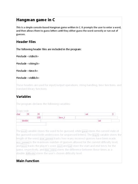 Hey guys! Ever wanted to dive into the world of C programming and create your own game? Well, today, we’re going to build a classic: the Hangman game! This project is a fantastic way to learn the basics of C, including variables, loops, conditional statements, and string manipulation. It’s a fun, hands-on project that will not only teach you the fundamentals but also give you a sense of accomplishment when you finally get your game up and running. Ready to get started? Let’s jump in! This project is perfect for beginners and those looking to refresh their C skills. We’ll break down the game into manageable steps, making it easy to follow along, even if you’re new to programming. Think of it as a fun challenge that helps you understand how different elements of C come together to create an interactive experience. So, grab your keyboard, and let’s start coding your own version of Hangman. You’ll be surprised at how rewarding it is to see your code bring a game to life. The beauty of the Hangman game lies in its simplicity. The core concept is easy to grasp, but the implementation in C provides a wealth of learning opportunities. As we develop the game, we’ll explore character input, comparisons, and output, while also understanding how to manage game states and user interactions. This project is much more than just a coding exercise; it’s a journey into the heart of programming concepts and the satisfaction of building something from scratch.