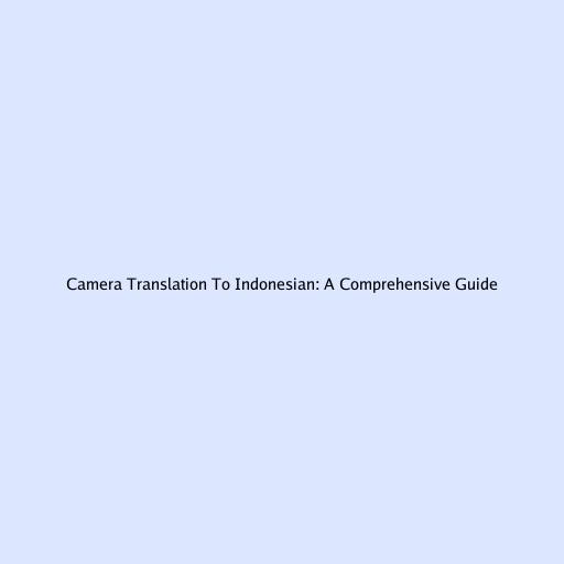 Camera Translation to Indonesian: A Comprehensive Guide