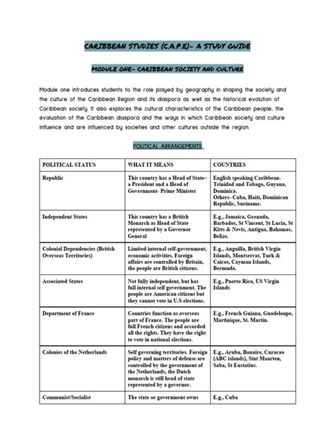 Let’s talk study resources , because you’ll need more than just this guide to truly ace CAPE Caribbean Studies. Your textbook is your best friend, so make sure you’re familiar with all the key concepts and theories. But don’t stop there! Explore online resources, such as academic journals, reputable websites, and online forums where you can discuss ideas with other students. Consider forming a study group with your classmates to share notes, quiz each other, and work through challenging concepts together. Also, take advantage of any resources provided by your teacher, such as practice exams, sample essays, and supplementary readings. Another useful resource is past papers. Reviewing past papers can give you a sense of the types of questions that are typically asked and the level of detail required in your responses. Additionally, consider attending workshops or seminars on Caribbean Studies to deepen your understanding of specific topics and improve your exam-taking skills. By utilizing a variety of study resources, you can broaden your knowledge, strengthen your understanding, and increase your confidence going into the CAPE Caribbean Studies exam. Remember, the more prepared you are, the better your chances of success.