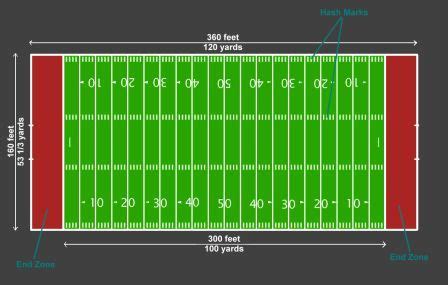 • End Zones : Each end zone is 10 yards deep and critical for scoring. These are the areas where players strive to catch passes and score touchdowns.