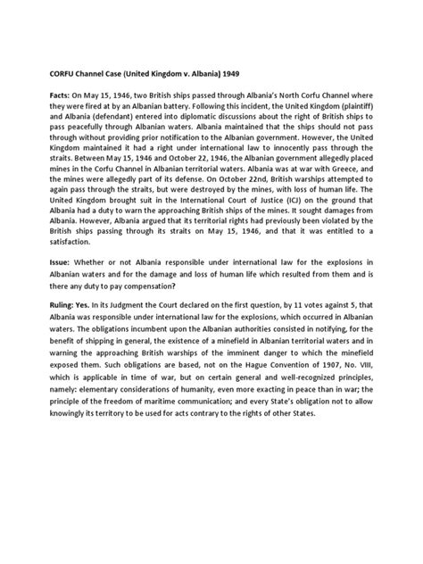 Hey everyone! Today, we’re diving deep into a super important case that really shaped international law as we know it: the Corfu Channel Case . This isn’t just some dusty old legal document, guys; it’s a foundational ruling by the International Court of Justice (ICJ) back in 1949. We’re talking about a situation that involved mine explosions in a disputed strait, a whole lot of diplomatic tension, and ultimately, the ICJ laying down some serious principles about state responsibility and the use of force. So, grab your thinking caps, and let’s unpack this epic case and why it’s still relevant today. We’ll cover what happened, the key legal questions the court had to tackle, the court’s decision, and the lasting impact this case has had on international relations and maritime law.