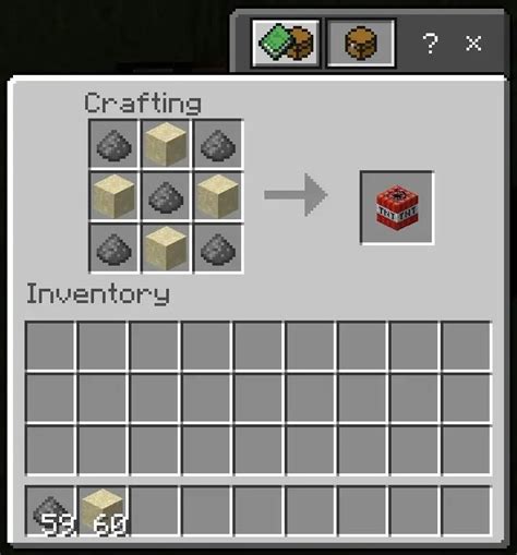 3. Collect Your TNT: Once you’ve arranged the ingredients correctly, the crafting table will produce a TNT block. Click on the resulting TNT block to move it into your inventory.