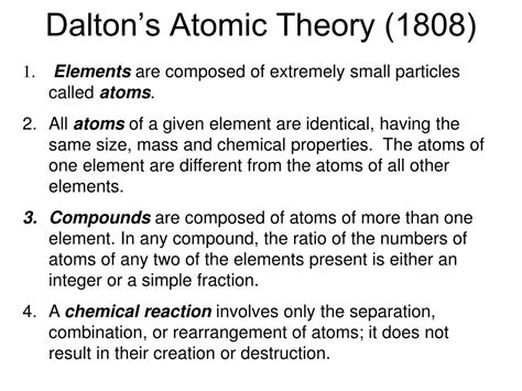Despite these limitations, Dalton’s Atomic Theory remains a cornerstone of chemistry. It was a revolutionary idea that transformed our understanding of matter and paved the way for countless discoveries.