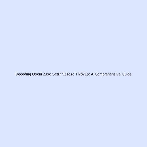 Decoding Osciu 23sc Sctr7 921csc Ti7871p: A Comprehensive Guide