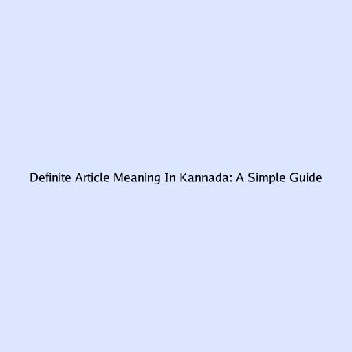 Definite Article Meaning in Kannada: A Simple Guide