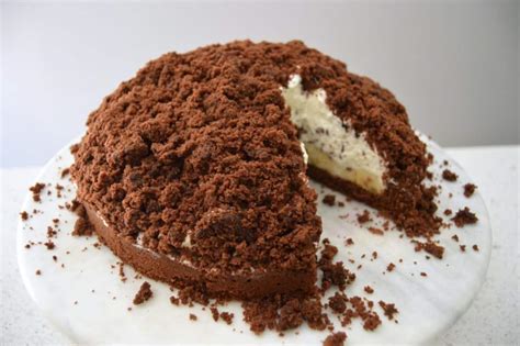 3. Create the Molehill: Crumble the top layer of the cake and arrange the crumbs over the cream, creating a molehill shape.