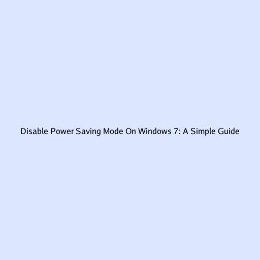 Disabling Power Saving Mode on Windows 7: A Simple Guide