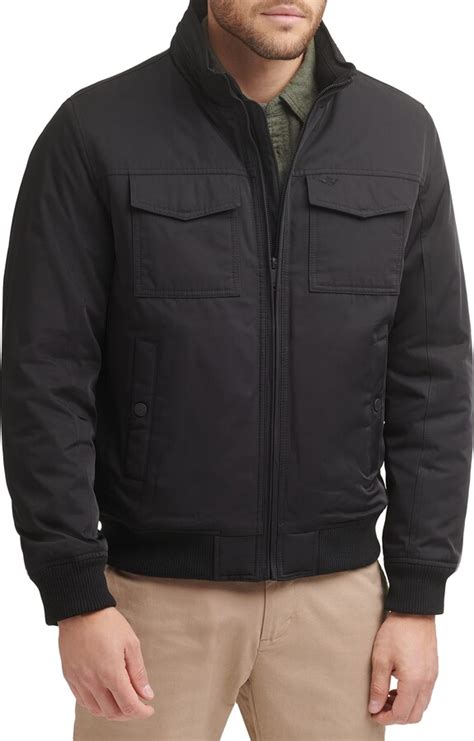 Now, how do you rock this Dockers Men’s Lined Water Resistant Midweight Bomber Jacket ? The beauty of a bomber jacket is its inherent versatility, and this Dockers piece is no exception. For a classic casual look , you can’t go wrong pairing it with a simple t-shirt, your favorite jeans, and some sneakers or boots. This is your everyday go-to for running errands, meeting friends for coffee, or just kicking back. The bomber jacket adds just the right amount of edge and style to keep it from looking too plain. If you want to step it up a notch for a smart-casual vibe, try layering the jacket over a long-sleeved henley or a casual button-down shirt (think plaid or chambray). Pair this with chinos or dark wash jeans and some desert boots or loafers. This outfit is perfect for a casual Friday at work, a dinner date, or a relaxed evening out. The bomber jacket provides a stylish outer layer that’s more refined than a hoodie but still relaxed enough for most social settings. For cooler weather , layering is key. Wear a warm sweater or a hoodie underneath the bomber jacket. This not only adds significant warmth but also creates a visually interesting layered effect. If the jacket has a contrasting lining, showing a bit of that at the collar or hem can add a nice touch. You can pair this layered look with jeans and sturdy boots for a rugged yet stylish ensemble. Don’t forget the accessories . A simple beanie or a baseball cap can complement the casual vibe, while a stylish watch adds a touch of sophistication. The ribbed cuffs and hem of the bomber jacket help to keep the warmth in and the wind out, making it practical for various conditions. When it comes to color, a classic bomber jacket color like navy, black, or olive green will offer the most styling options, easily matching with a wide range of other clothing items. This Dockers jacket, with its water-resistant properties, also means you don’t have to worry too much about a little bit of weather ruining your outfit, adding to its overall practicality and appeal for daily wear.