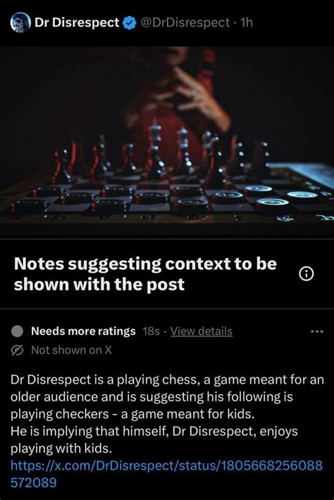 The humor lies in the contrast between the complexity of chess and DrDisrespect ’s over-the-top confidence . Even if you don’t know the first thing about chess, the tweet is funny because it plays on the archetype of the know-it-all gamer . The actual chess position is often secondary to the comedic delivery . People who understand chess get a kick out of how wrong (or occasionally right) he might be, and those who don’t can still appreciate the character.