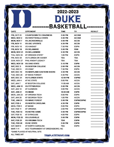 Once the calendar flips to the new year, the Duke Blue Devils basketball team schedule shifts into what can only be described as the ACC Gauntlet . Guys, this is where the real battle begins, a grueling stretch of conference play that tests every fiber of our team’s being. The Atlantic Coast Conference is, without a doubt, one of the most competitive leagues in college basketball, packed with storied programs, fierce rivalries , and incredibly talented players. Every game in the ACC schedule is a heavyweight fight, whether we’re playing at home in the electric atmosphere of Cameron Indoor Stadium or hitting the road to face hostile crowds. The intensity ramps up, the stakes get higher, and every possession feels like it could swing the momentum of the game. Our Duke Blue Devils basketball team schedule through conference play will feature those classic rivalry games we all live for – especially against our neighbors down the road, the Tar Heels. These matchups aren’t just games; they’re cultural events, steeped in history, passion, and bragging rights. But it’s not just UNC; teams like NC State, Louisville, Virginia, and Florida State always bring their A-game, making every single contest a must-watch event. The beauty and brutality of the ACC is that there are no easy nights. Even teams lower in the standings can pull off an upset if you’re not fully locked in, which means our Blue Devils need to be mentally and physically prepared for every tip-off. Road games, in particular, present unique challenges. Traveling, playing in unfamiliar arenas against rabid fan bases – these experiences truly forge a team’s character. How our players perform in these tough environments often determines our standing in the league. The ACC conference play portion of the Duke Blue Devils basketball schedule is absolutely critical for our seeding in the ACC Tournament and, ultimately, for our position in the NCAA Tournament. Each win contributes to our resume, while losses can make the path harder. We’re talking about a stretch of games that defines a team’s legacy, where legends are made and unforgettable moments are etched into the annals of Duke basketball history. So, get ready for an adrenaline-fueled ride, because the ACC schedule is where our Blue Devils will truly show what they’re made of, battling night in and night out for supremacy!
