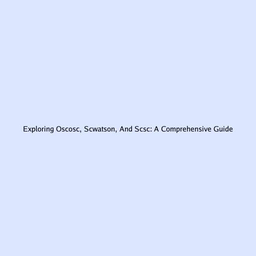 Exploring Oscosc, Scwatson, and Scsc: A Comprehensive Guide