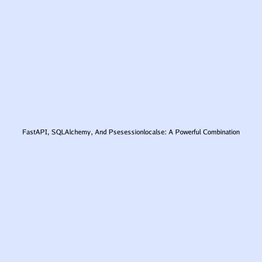 FastAPI, SQLAlchemy, And Psesessionlocalse: A Powerful Combination