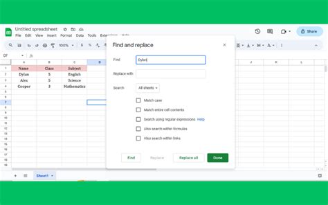 Okay, so the basic “Find” is cool and all, but sometimes you need to bring out the big guns! The “Find and Replace” tool in Google Sheets isn’t just for replacing stuff; it’s also a supercharged search function. It lets you do more advanced searches and gives you extra control over what you find. Here’s how to use it like a pro: