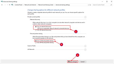 5. Make sure the following are checked, both for Private and Public networks: