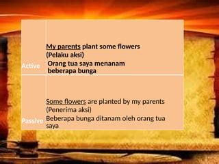 Now, let’s flip the script to the passive voice . The structure changes to: Object + Form of ‘to be’ + Past Participle of Verb + (by + Subject) . When we apply this to our sentence, the ‘new flowers’ (our object) become the subject of the passive sentence. The verb ‘has planted’ needs to be transformed. We keep the tense (present perfect) by using ‘has been’ or ‘have been’ followed by the past participle ‘planted’. So, ‘new flowers’ takes ‘have been’ because it’s plural. And the original subject, ‘the gardener,’ can be added at the end with ‘by’ or simply omitted. This gives us: ‘New flowers have been planted in the garden (by the gardener).’ See? The focus shifts entirely to the flowers and the fact that they are now in the garden. It’s like changing the camera angle in a movie; you’re highlighting different elements.