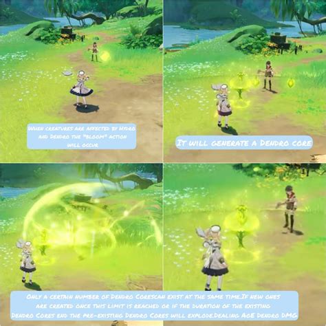 Let’s start with Bloom , which is the fundamental Dendro reaction. When Dendro meets Hydro , you get a Dendro Core. These little guys hang out on the field for a bit, and then boom – they explode, dealing Dendro DMG in a small AoE. This is the building block for a lot of other powerful reactions, so understanding how Bloom works is super important. The damage of the Bloom explosion scales with the Elemental Mastery (EM) of the character who triggered the reaction, and also with the level of the character. It’s important to note that Bloom itself doesn’t have a cooldown on its trigger, meaning you can technically cause multiple Blooms in quick succession if you have enough Dendro and Hydro application. However, there’s a limit to how many Dendro Cores can exist at once (around 5-10 depending on the exact conditions). When the limit is reached, existing Dendro Cores will explode prematurely. The key here is consistent application of both Dendro and Hydro. Teams that can rapidly apply both elements will see the most benefit from Bloom. Think about characters who can continuously apply Hydro, like Xingqiu or Yelan, paired with a Dendro applicator. The Dendro Cores are your investment, and the explosion is your return. It’s a reaction that rewards sustained elemental application and can be a great starting point for building more complex Dendro-based teams. Don’t underestimate the power of these exploding seeds; they can pack a serious punch when managed correctly.