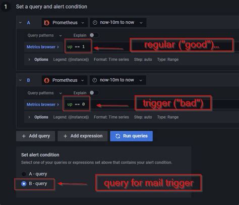 2. Define the conditions that will trigger the alert. For example, you might want to trigger an alert if CPU usage exceeds 80% for 5 minutes. Grafana offers a variety of conditions you can use, including thresholds, ranges, and more complex expressions. Configure the conditions according to your specific monitoring needs.