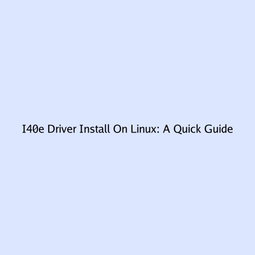 I40e Driver Install On Linux: A Quick Guide