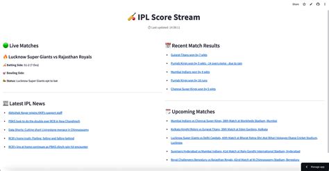 When we’re talking about live cricket scores , Cricbuzz often tops the list, and for a good reason. It’s not just about the scores, guys; it’s about the complete experience. Cricbuzz offers a comprehensive package that caters to all your cricket needs. From the moment the first ball is bowled to the final wicket, Cricbuzz provides up-to-the-minute updates, ensuring you don’t miss a single moment of the IPL action. The platform’s popularity is a testament to its reliability and user-friendly interface. Whether you’re a seasoned cricket aficionado or a casual viewer, Cricbuzz has something for everyone.