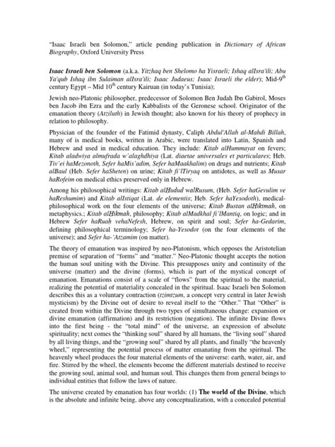 So, who was Isaac Israeli ? Well, picture this: it’s the late 9th and early 10th centuries, a period brimming with intellectual ferment across different cultures. Isaac Israeli, also known as Isaac ben Solomon Israeli, was a prominent Jewish philosopher and physician who lived in Kairouan, Tunisia . This guy wasn’t just any old scholar; he was a big deal! He’s often considered one of the most important Jewish thinkers of the Middle Ages, standing shoulder-to-shoulder with giants like Maimonides. Born around 855 CE and passing away around 955 CE, he lived a remarkably long and productive life for his time. His intellectual prowess spanned multiple disciplines, making him a true Renaissance man, long before the Renaissance was even a thing. He was fluent in Arabic, which was the lingua franca of scholarship at the time, and his works were initially written in this language. This allowed him to engage deeply with Greek philosophy, particularly the teachings of Aristotle and Plato, as well as with contemporary Islamic scientific and philosophical thought. It’s this unique position, bridging Jewish tradition with the broader intellectual landscape of the Islamic world, that makes his work so distinctive and valuable. He was not just a passive recipient of knowledge; he actively synthesized and commented on existing ideas, offering his own unique perspectives. His medical practice was also highly regarded, and he served as a physician to the Aghlabid and Fatimid dynasties, showcasing his esteemed position in society. This dual expertise in both the healing arts and profound philosophical inquiry sets him apart, offering a holistic view of human existence that was characteristic of many great medieval thinkers.