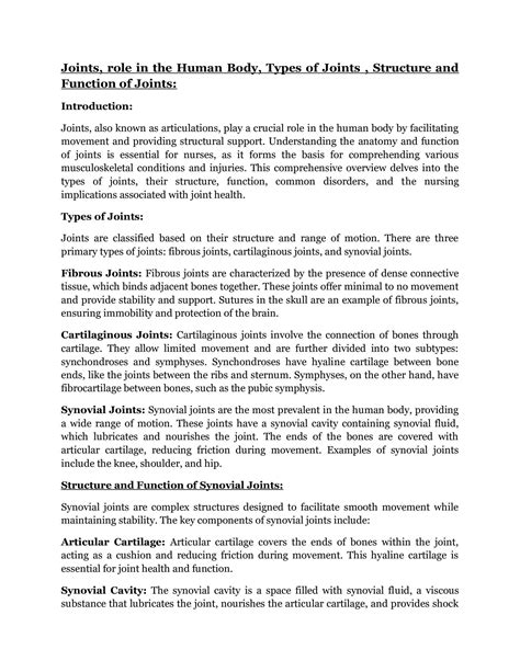 Joints in the Human Body: Structure and Function