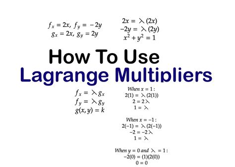 Understanding and applying the Lagrange multiplier method opens up a whole new world of optimization possibilities. It’s a fantastic tool for anyone working in fields like engineering, economics, and computer science. So, keep practicing, and you’ll be optimizing like a pro in no time! Remember to always define your functions, calculate gradients, set up the Lagrange equation , solve the system, and evaluate to get your final answer. Good luck, and have fun optimizing!