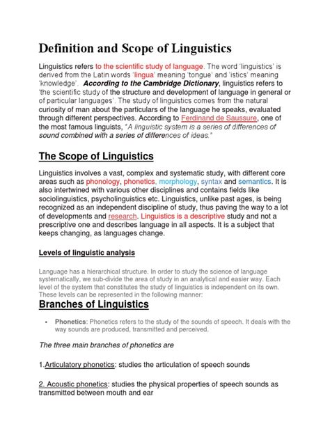 Alright, let’s break down the main parts that make up language. Understanding these will give you a solid grasp of what linguists focus on. These components include phonetics, phonology, morphology, syntax, semantics, and pragmatics. Each level contributes to the overall complexity and richness of language. Phonetics, for example, deals with the production and perception of speech sounds, examining the physical properties of these sounds and how they are articulated by the human vocal tract. Phonology, on the other hand, focuses on how these sounds are organized and patterned within a specific language. It explores which sounds are considered distinct or contrastive, and how they can combine to form meaningful units. Morphology looks at the structure of words and how they are formed from smaller units called morphemes. Morphemes can be either free (able to stand alone as words) or bound (requiring attachment to other morphemes). Syntax is concerned with the rules that govern how words are combined to form phrases and sentences. It specifies the order and arrangement of words, as well as the hierarchical structure of sentences. Semantics deals with the meaning of words, phrases, and sentences. It investigates how meaning is represented in the mind and how it is related to the external world. Pragmatics examines how context influences the interpretation of meaning. It considers factors such as the speaker’s intentions, the listener’s background knowledge, and the social situation in which communication takes place. Understanding each of these components is essential for a comprehensive understanding of language and how it functions. Together, they provide a framework for analyzing and describing the diverse ways in which humans communicate.