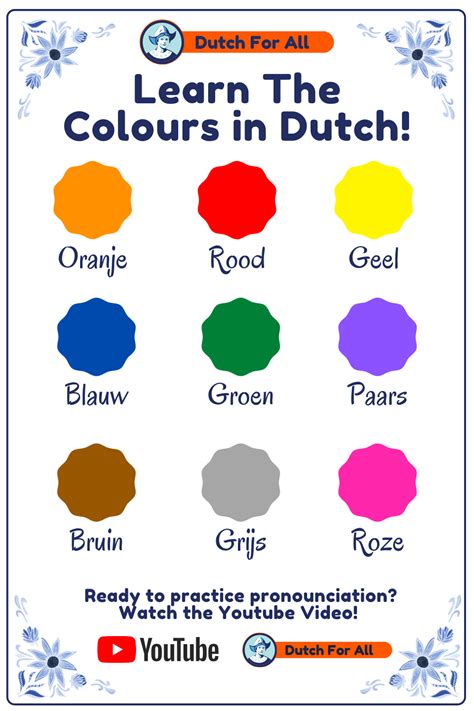 These are your starting colors. Think of them as the primary colors in your Dutch language palette. Practice saying them out loud. Don’t worry if you stumble a bit at first; that’s perfectly normal. The more you practice, the easier it will become. Try associating each color with an object you see every day. For example, think of a red apple when you say “rood,” or a blue sky when you say “blauw.” This will help you remember the words more easily.