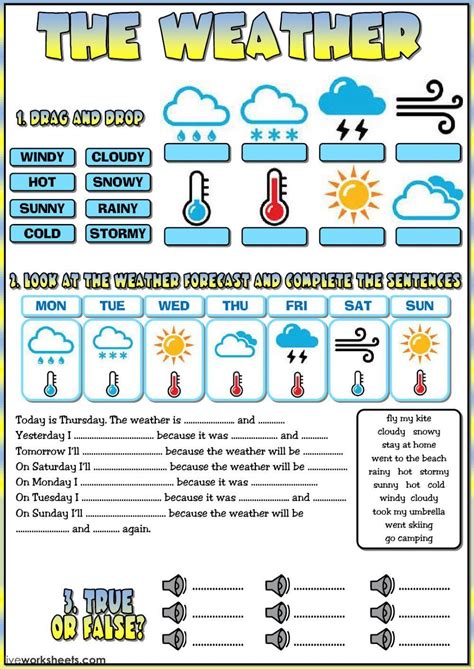 So, what exactly makes Liveworksheets such a big deal when it comes to teaching and learning about weather ? Well, imagine a platform where you can ditch those old-school, paper-based worksheets and jump into a world of interactive, digital exercises. That’s pretty much the magic of Liveworksheets! For teachers, this means less grading and more time to focus on what you do best: teaching. Plus, you can create super cool, personalized worksheets that cater to different learning styles. Kids today are digital natives, right? They’re glued to screens, so why not leverage that for their education? Liveworksheets allows you to create exercises that are not just informative but also incredibly engaging. Think drag-and-drop activities for matching weather symbols to their names, fill-in-the-blanks for describing different weather conditions, or even interactive quizzes where students can get instant feedback. This immediate feedback loop is crucial for learning; it helps students understand their mistakes right away and reinforces what they’ve learned correctly. It’s like having a tireless teaching assistant who’s available 24 7 ! And for the students, it’s way more fun than just staring at a piece of paper. They can interact with the content, hear sounds, watch videos, and even get their answers checked automatically. This not only makes learning about the weather more enjoyable but also significantly boosts their retention and understanding. It’s a win-win situation, if you ask me!