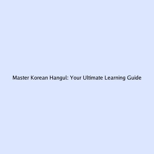 Master Korean Hangul: Your Ultimate Learning Guide