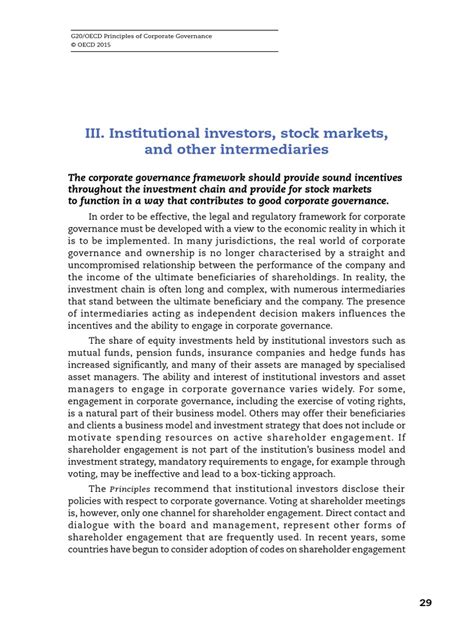 Moving onto the second pillar of the 2015 OECD G20 Principles of Corporate Governance , we delve into something fundamental: the rights of shareholders and the core functions that come with ownership. Guys, this is where the power of the actual owners of a company comes into play. These principles firmly establish that shareholders should have certain basic rights that are protected and facilitated. We’re talking about rights like the ability to secure methods of ownership registration, to transfer shares, to obtain relevant information about the corporation on a timely and regular basis, and to participate in, and vote at, general shareholder meetings. Crucially, this pillar emphasizes the right to elect and remove members of the board and to approve significant corporate actions, such as major asset sales or mergers. It’s about ensuring that the owners have a real say in the direction of their investment. The 2015 principles also stress the importance of shareholders being able to ask questions to the board and management and to voice their concerns. Furthermore, they highlight the right to share in the profits of the corporation, meaning that shareholders should receive dividends if declared, and participate in any residual value in the event of liquidation. A significant aspect here is the encouragement of active ownership by institutional investors, like pension funds and mutual funds. These large investors, holding substantial stakes, are encouraged to exercise their ownership rights responsibly and effectively. The principles recommend that institutional investors disclose their corporate governance or voting policies, helping to increase transparency and accountability. Essentially, this pillar ensures that shareholders aren’t just passive recipients of returns but active participants in the governance of the companies they own, fostering a sense of shared responsibility and alignment of interests. Without these fundamental protections and clear pathways for exercising ownership functions, investor confidence would surely plummet, undermining the very essence of capital markets. This forms a critical part of the 2015 OECD G20 Principles , ensuring that the bedrock of ownership is stable and respected.