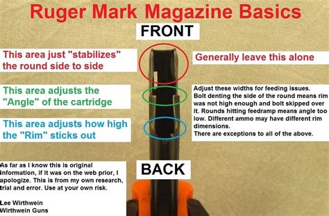 Okay, guys, let’s get into the nitty-gritty of tuning your Ruger Mark IV magazine ! The very first step, before any filing or polishing, is to safely disassemble your magazine and give it a thorough initial inspection . This phase is crucial because it helps us identify the specific problem areas that need attention, ensuring our efforts are targeted and effective. You don’t want to start grinding away blindly; we want a methodical approach to achieve a truly tuned magazine . Start by ensuring the magazine is empty – seriously, double-check! Once you’re certain it’s empty, locate the small pin or button on the base plate. On most Ruger Mark IV magazines , you’ll depress this pin and slide the base plate forward and off. Be careful here, because the magazine spring is under tension and will want to spring out once the base plate is removed. Control its release to prevent any parts from flying across the room – trust me, it’s a pain to find those little guys. Once the base plate is off, carefully remove the spring and the magazine follower . Now that you have all the components separated – the magazine body, spring, follower, and base plate – it’s time for a detailed visual inspection. Hold the magazine body up to a good light source. Look closely at the inside walls of the magazine. Do you see any obvious burrs, rough spots, or manufacturing imperfections? Pay particular attention to the areas where the follower and rounds slide. These rough patches are prime candidates for friction, which can lead to feeding issues and a less-than-smooth loading experience. Use your magnifying glass here; those tiny burrs are often the biggest culprits. Next, inspect the feed lips at the top of the magazine. These are incredibly important for reliable feeding. Check for any sharp edges, deformities, or unevenness. The feed lips guide the cartridge into the chamber, so they need to be smooth and properly formed. Any snag here can cause a failure to feed or even damage the cartridge rim. Now, let’s turn our attention to the magazine follower . This is another critical component in the Ruger Mark IV magazine system. Examine the follower for any molding flash, rough edges, or burrs, especially on its sides where it contacts the inner walls of the magazine body. A sticky follower is a common cause of poor feeding, particularly with the last few rounds. Ensure it moves freely without binding. Also, look at the spring . While springs usually don’t need “tuning” in the traditional sense, inspect it for any kinks, bends, or signs of fatigue. If the spring appears weak, severely kinked, or damaged, it might be best to consider replacing it, as proper spring tension is vital for consistent feeding. A thorough initial inspection like this helps you create a mental (or even written) checklist of areas to address during the tuning process . It ensures you focus your efforts where they’ll have the most impact on improving your Ruger Mark IV magazine’s performance and overall reliability, making this step truly foundational for a successful tune-up. Take your time, be meticulous, and you’ll be well on your way to a smoother operating magazine.