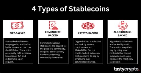 Now, how does this stability magic happen? Stablecoins employ different mechanisms to maintain their peg to a stable asset. These mechanisms are the key to the success of a stablecoin and determine its reliability. There are different types of stablecoins, each with its unique approach to maintain this peg: