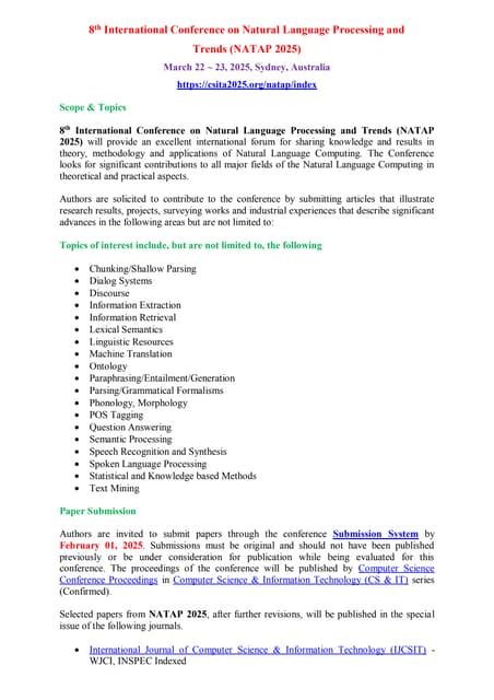 - Keynote Speakers: Get ready to be inspired by the leading experts in the field. Keynote speakers are typically renowned researchers or industry leaders who will share their vision for the future of language processing.
