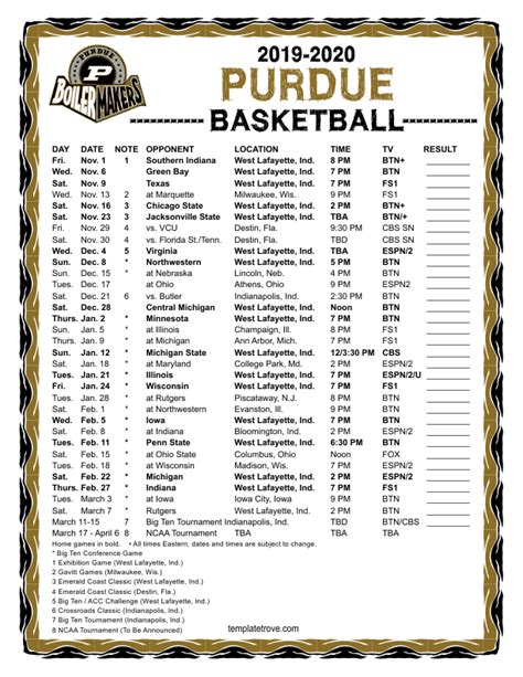 Why is a printable schedule so clutch? Well, beyond the obvious convenience, it helps you plan your life. You can easily see the flow of the season, identify critical stretches, and plan your social calendar around game days. No more frantically searching your phone for the next game time when it’s already tipped off! Having it physically present serves as a constant reminder of the team’s journey and builds anticipation for each upcoming contest. It’s a tangible connection to the team and the season. The Purdue basketball schedule 2023-24 printable PDF is more than just a list of dates; it’s your game plan for being the ultimate fan. It’s about commitment, passion, and being part of the Boilermaker faithful every step of the way. So, make sure you grab that official PDF as soon as it drops, get it printed, and get ready for an unforgettable season of Purdue basketball. It’s the easiest way to ensure you don’t miss a single thrilling moment, from the opening tip to the final buzzer of whatever postseason play might come your way. Don’t underestimate the power of having that schedule handy; it truly enhances the fan experience and keeps you connected to the action all season long.