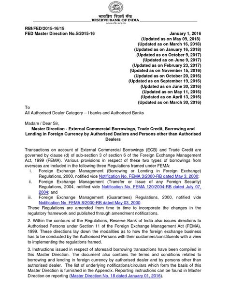 Hey guys! Ever wondered how Indian companies raise funds from abroad? Well, one of the major ways is through External Commercial Borrowings (ECB) . And guess who regulates these borrowings? That’s right, it’s the Reserve Bank of India (RBI) ! The RBI keeps updating the rules and regulations around ECBs to ensure smooth functioning and economic stability. So, let’s dive deep into the latest RBI circulars on ECBs and understand what they mean for businesses and the Indian economy.