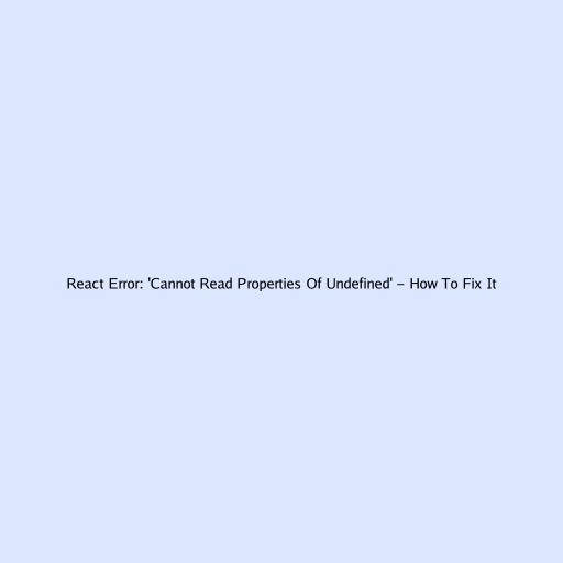 React Error: ‘Cannot Read Properties of Undefined’ - How to Fix It