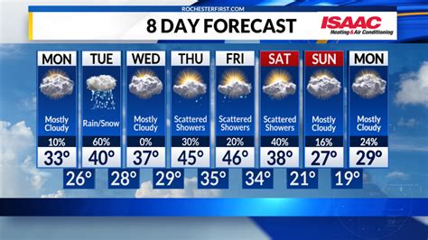 Okay, so you’re watching Channel 10 and trying to make sense of the weather forecast . What should you be looking for? First off, pay attention to the temperature. Is it going to be hot, cold, or somewhere in between? Next, check out the precipitation forecast. Will there be rain, snow, or just cloudy skies? The forecast will also usually mention the wind speed and direction, which can affect how the temperature feels. For example, a cold day with strong winds will feel much colder than a cold day with no wind. Understanding the forecast also means knowing the difference between a chance of rain and a certainty of rain. A “chance of rain” means there’s a possibility of showers, but it’s not a sure thing. A “certainty of rain” means you should definitely grab your umbrella! Another key element is understanding weather maps and radar. Channel 10’s meteorologists often use these tools to show where storms are located and how they’re moving. Learning how to interpret these visuals can give you a better sense of what to expect. Finally, be aware of any severe weather alerts, such as tornado warnings or flash flood warnings. These alerts mean that dangerous weather is imminent, and you should take precautions to stay safe. Knowing how to interpret weather information empowers you to make informed decisions and stay prepared for whatever the day brings. Consider that understanding the forecast involves not just looking at the immediate conditions, but also the trends and patterns that might develop over the next few days. This longer-term view can help you plan activities that depend on favorable weather, like outdoor events or weekend trips. Additionally, knowing the typical seasonal weather patterns in Rochester can provide a baseline understanding of what to expect during different times of the year.