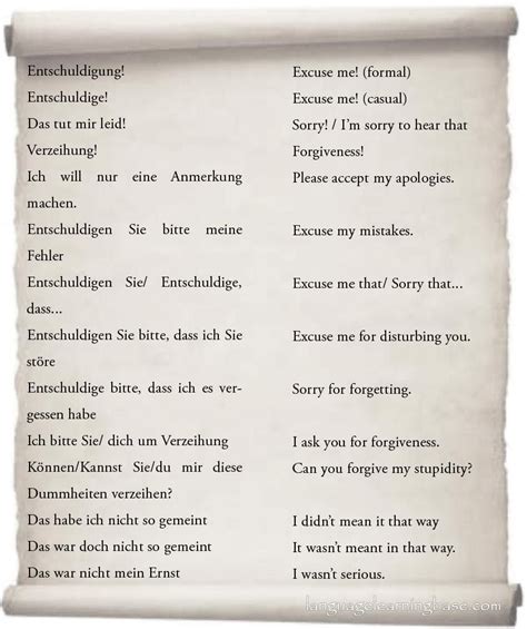 No matter which phrase you choose, whether it’s a quick ‘tschuldigung , a heartfelt tut mir leid , or even a slangy Sorry , the most crucial element in any apology is sincerity . A mumbled, half-hearted apology can often do more harm than good. Germans, like people everywhere, value honesty and genuine remorse. So, when you say you’re sorry, make sure you mean it. This doesn’t mean you need to break down in tears for every minor mistake, but your tone of voice, your body language, and your willingness to acknowledge the impact of your actions matter a lot. If you’ve genuinely messed up, a simple tut mir leid accompanied by a look of regret and perhaps a brief explanation (without making excuses!) goes a long way. Conversely, if you apologize insincerely, people will notice, and it can damage your credibility. Think about it: if someone apologizes to you, but you can tell they don’t really mean it, how do you feel? Probably a bit annoyed, right? It’s the same in German. So, focus on conveying genuine regret and respect for the other person. The words are tools, but the intention behind them is what truly counts. Use these informal German apologies with confidence and authenticity, and you’ll find they serve you well in building and maintaining positive relationships. Remember, guys, effective communication isn’t just about knowing the right words; it’s about conveying the right feelings. So, practice these phrases, but more importantly, practice being sincere when you use them. That’s the real secret to a successful apology, no matter the language!