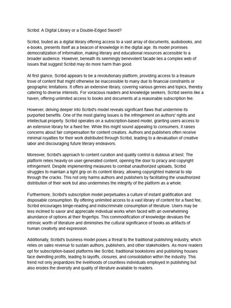Scribd, on the other hand, offers unparalleled convenience and accessibility . With a subscription, you can carry an entire library in your pocket, accessing millions of titles on your smartphone, tablet, or computer. This makes it ideal for travel, commuting, or simply reading on the go. Scribd also offers significant cost savings compared to purchasing individual books, especially for avid readers who consume a large volume of content. Additionally, Scribd provides access to a wider range of content, including audiobooks, magazines, and documents, which may not be readily available in traditional formats. Ultimately, the choice between Scribd and traditional books depends on your personal preferences and reading habits. If you value the tactile experience and aesthetic appeal of physical books, then traditional books may be the better option. However, if you prioritize convenience, affordability, and accessibility, then Scribd is definitely worth considering.