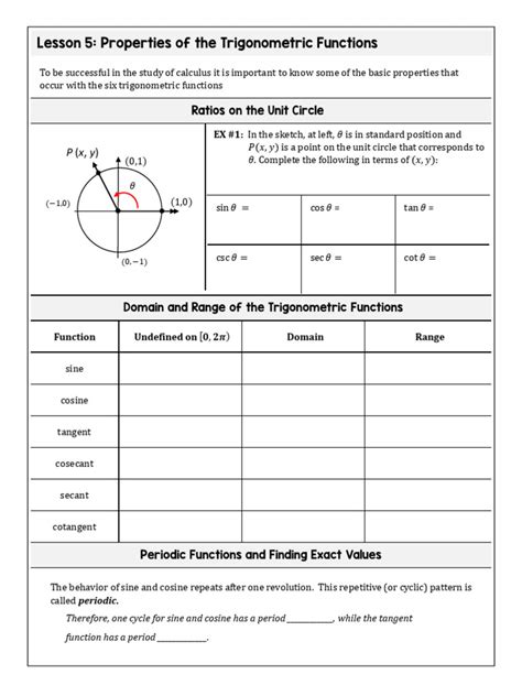 Moreover, understanding the unit circle is crucial. The unit circle is a circle with a radius of 1 centered at the origin of a coordinate plane. It helps visualize the values of sine, cosine, and tangent for different angles. The x-coordinate of a point on the unit circle corresponds to the cosine of the angle, and the y-coordinate corresponds to the sine of the angle. When you’re trying to wrap your head around these concepts, think of the unit circle as your best friend.