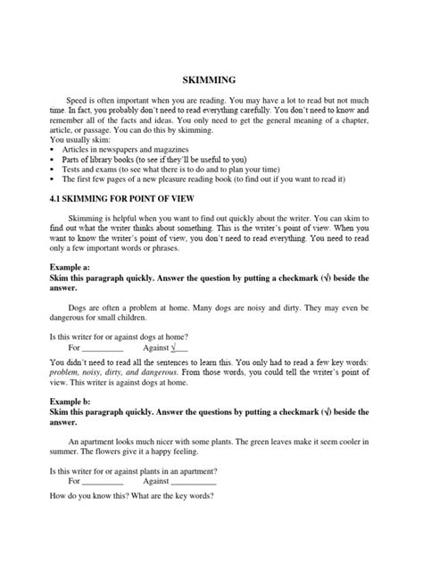 Knowing the purpose of skimming in effective reading is super important, but so is knowing when to deploy this awesome technique. Skimming is your best friend when you’re facing a large volume of text and need to get a general overview quickly. Think about: previewing a textbook chapter before diving into a deep study. You skim the headings, subheadings, and intro/conclusion to get a feel for the topics covered. This helps you anticipate what you’ll be learning and sets the stage for more focused reading later. It’s also perfect for scanning news articles or blog posts to decide if they’re worth your time. You’re not trying to memorize every detail; you just want the main story. Reviewing meeting minutes or long emails to extract key decisions or action items? Skimming is your go-to. It helps you cut through the jargon and get to the heart of the matter. Identifying relevant sources for research is another prime use case. You skim abstracts, introductions, and conclusions to quickly assess if a paper will be useful for your project. However, guys, it’s crucial to know when not to skim. If you’re reading a legal document, a complex scientific paper requiring deep understanding, poetry, or a novel you’re reading for pleasure , skimming is probably a bad idea. These types of texts require careful, deliberate reading to grasp the nuances, emotions, and intricate details. Trying to skim a Shakespearean sonnet would be like trying to sprint through a delicate ballet – you’d miss the artistry and meaning entirely. Similarly, if you need to recall specific details or arguments accurately , like for an exam where memorization is key, you’ll need to engage in more thorough reading strategies. Skimming is about the big picture; detailed reading is about the fine print. So, use skimming strategically. It’s a tool, and like any tool, it’s most effective when used for the right job. Misusing it can lead to misunderstanding or missing critical information, so choose wisely, my friends!