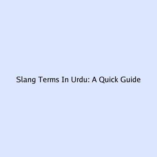 Slang Terms in Urdu: A Quick Guide