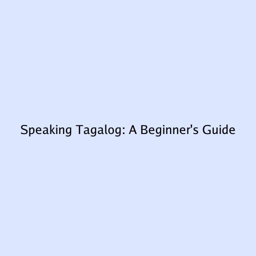 Speaking Tagalog: A Beginner's Guide