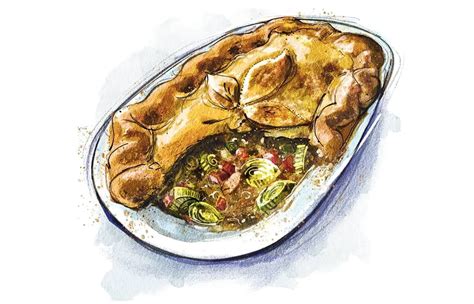 8. Bake: Place the pie on a baking sheet (to catch any drips) and bake in the preheated oven for 20 minutes. Then, reduce the oven temperature to 180°C (160°C fan/350°F/Gas Mark 4) and continue baking for another 30-40 minutes, or until the pastry is golden brown and crisp, and the filling is bubbling gently through the steam vents.
