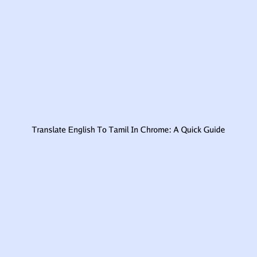 Translate English to Tamil in Chrome: A Quick Guide