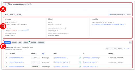 • Transactions: A list of all transactions related to that token. This includes buys, sells, transfers, and interactions with DeFi protocols. You can click on any transaction to see details like the sender, recipient, and gas fees.